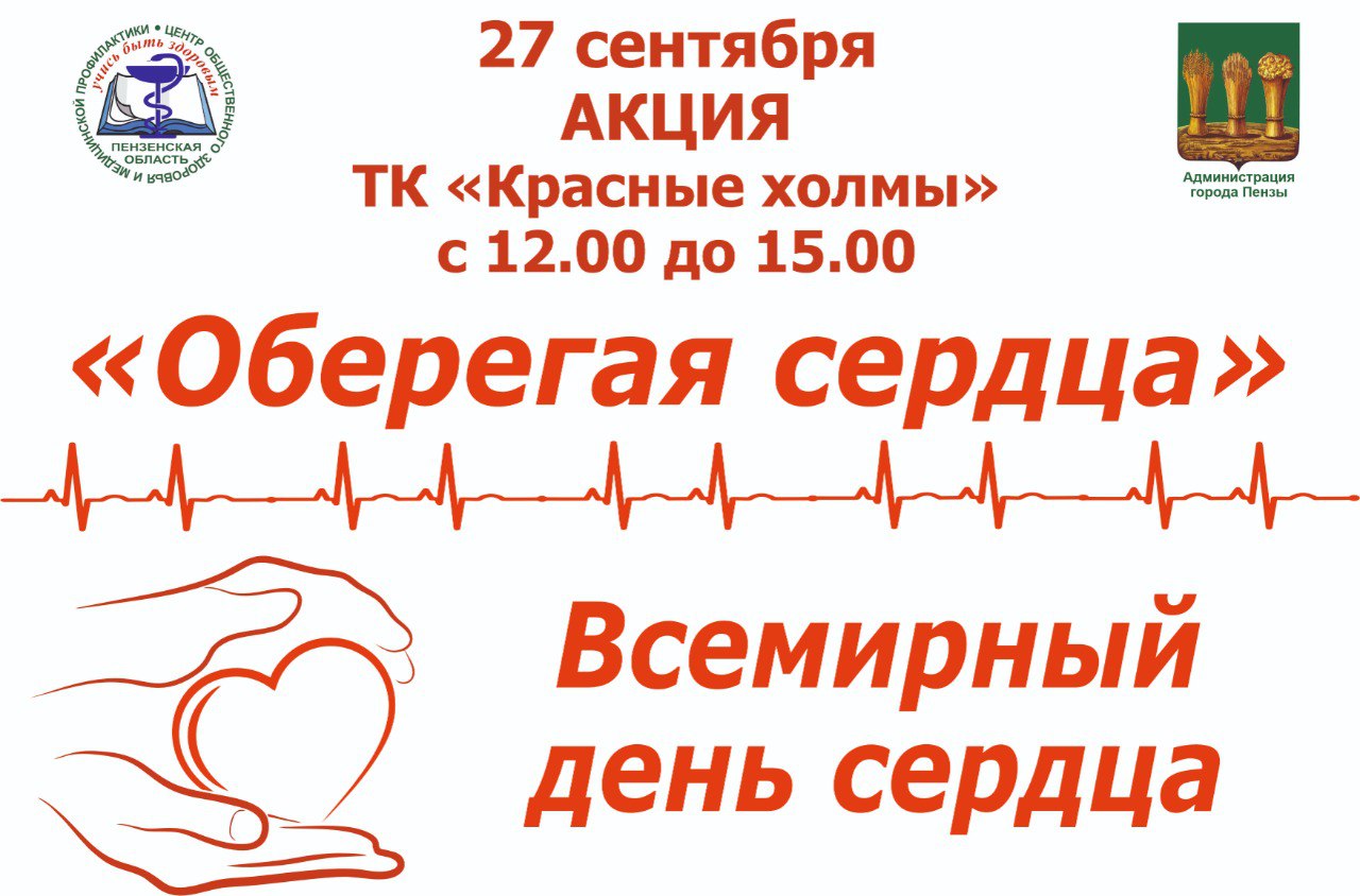 Справочно: в преддверии Всемирного дня сердца, который ежегодно отмечается 29 сентября, Министерством здравоохранения Пензенской области запланирован цикл мероприятий в рамках Всероссийской акции «Оберегая сердца», которая проводится в нашем регионе уже не первый год.